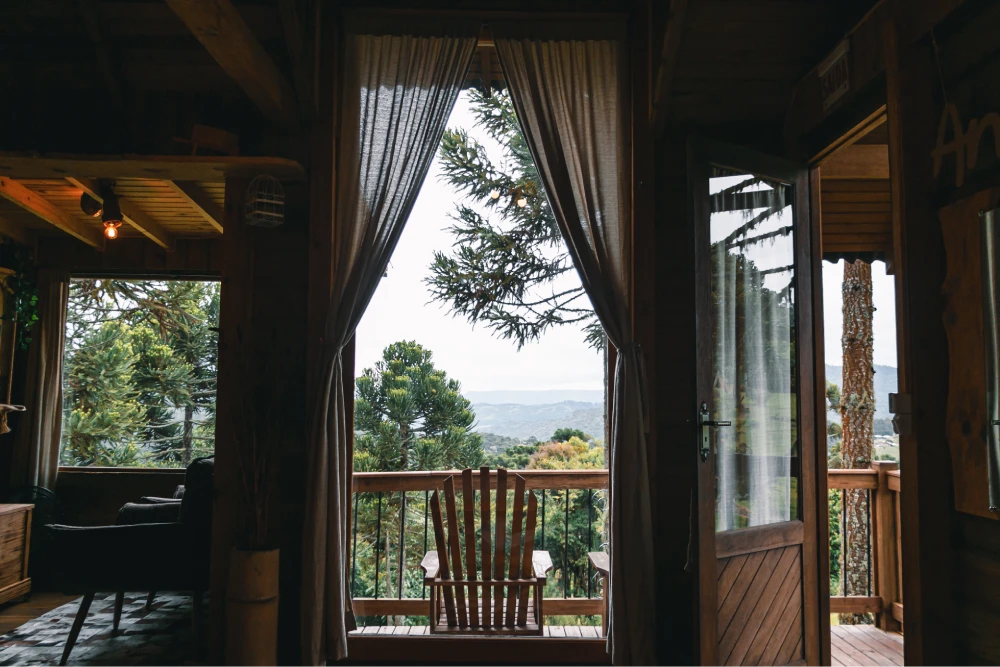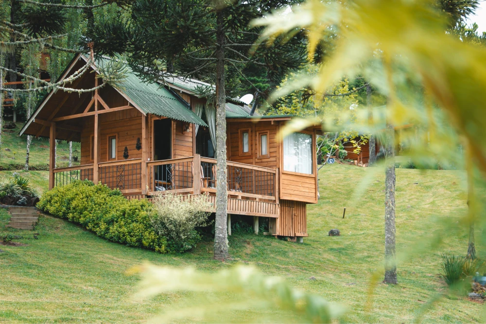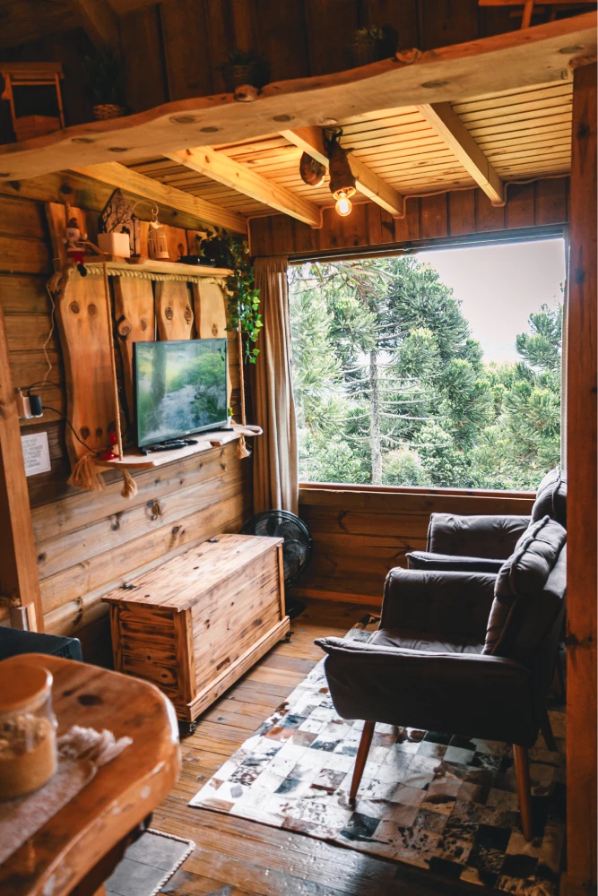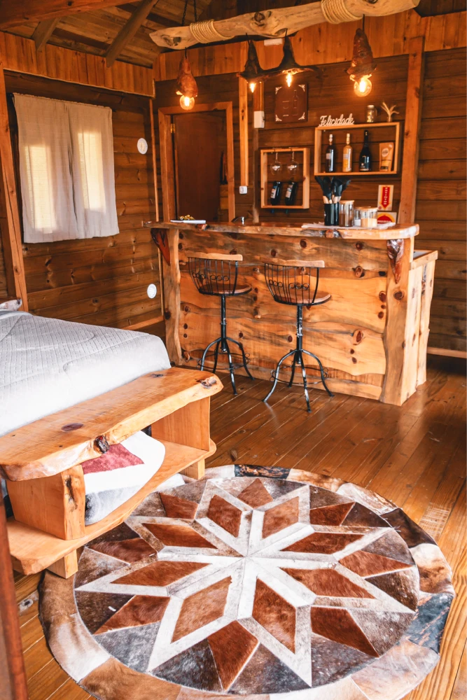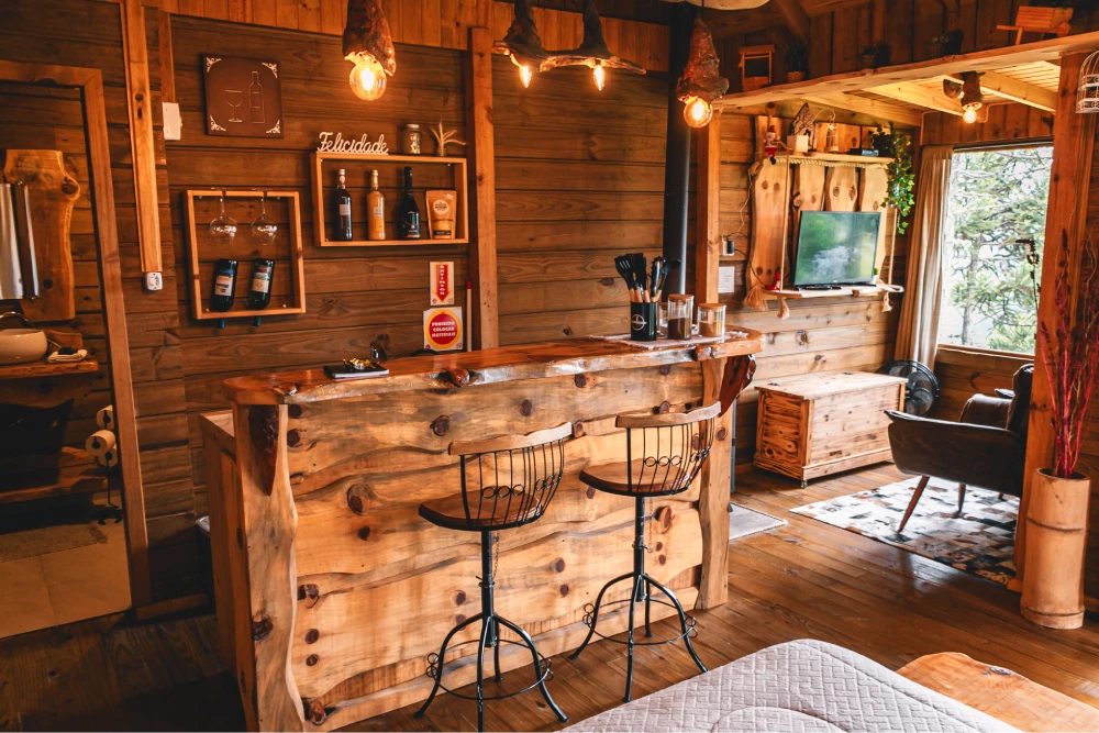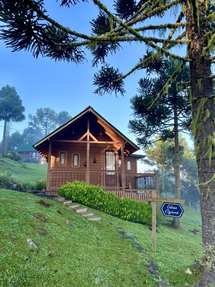 Charmosa e acolhedora, a Cabana Cajuvá é perfeita para casais que buscam conforto e tranquilidade na serra.
